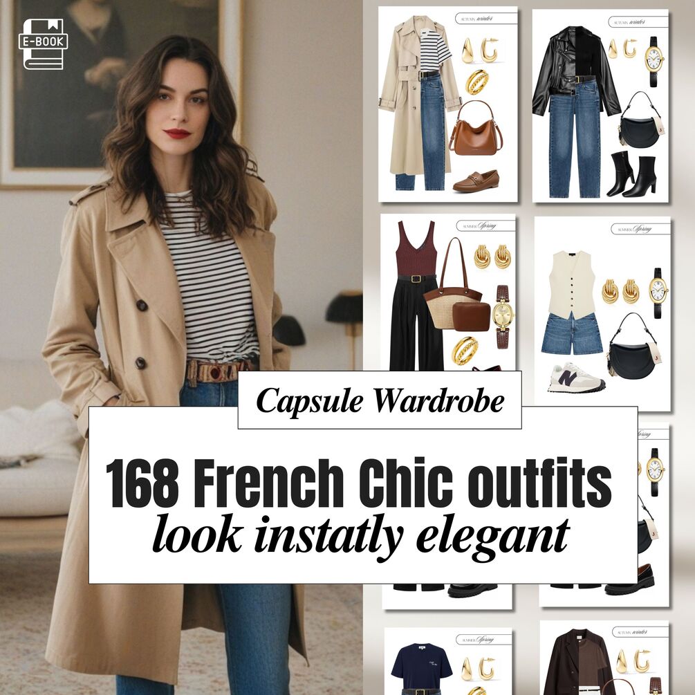 This Parisian chic Style ebook will help you go from feeling overwhelmed and unsure about what to wear to feeling confident, elegant, and in control of your wardrobe. Instead of wasting time every morning trying on outfits that don’t feel right, you’ll have 168 timeless looks already planned for you. You’ll learn how to declutter your closet, define your personal style, and understand what flatters your body shape — all with easy-to-follow guides. This means less stress, no more impulse shopping, and a wardrobe that finally feels like you.