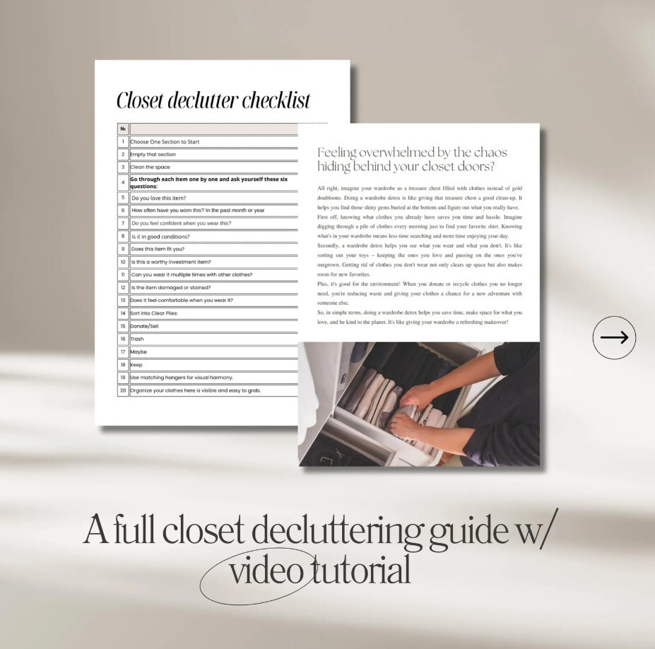 ✔ Closet Declutter Guide – Step-by-step process to simplify and organize your wardrobe.