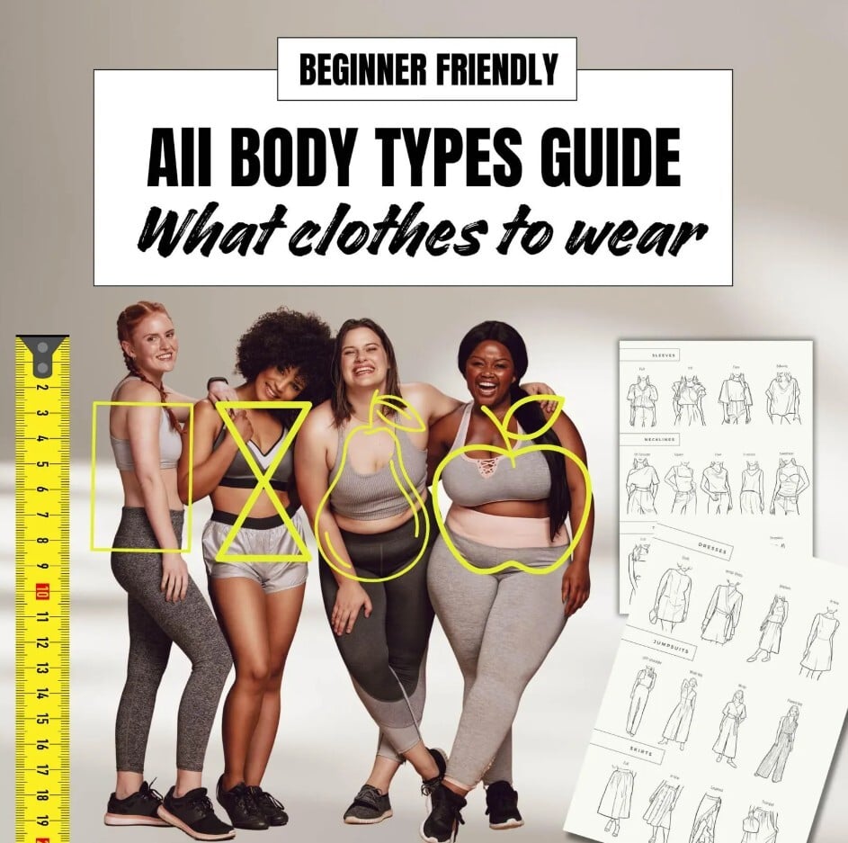 ✔ Illustrated Clothing Guide for all body types – Discover the best tops, coats, sleeves, jeans, jackets, and necklines for your body shape